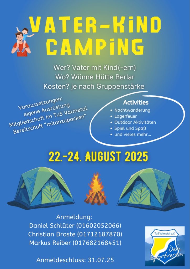 Vater – Kind Camping von stran | Aug. 8, 2025 | Aktuelles Ein tolles neues Event wirft seine Schatten vorraus!