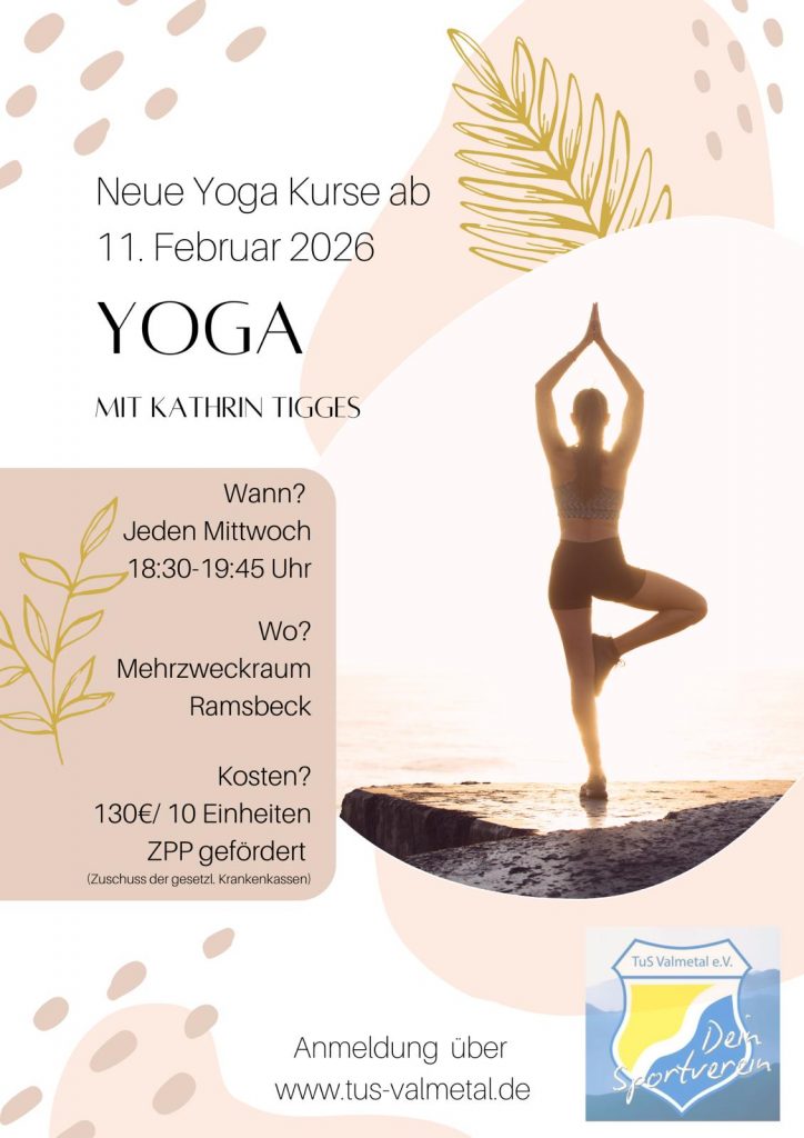 Hier ist die Anmeldung zum neuen Yoga Kurs möglich! Für den Kurs sind 16 Plätze vorhanden, die nach der Reihenfolge der Anmeldung vergeben werden!